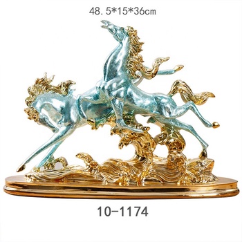Escultura de caballo dorado de resina de tamaño real, estatua de decoración artística para el hogar