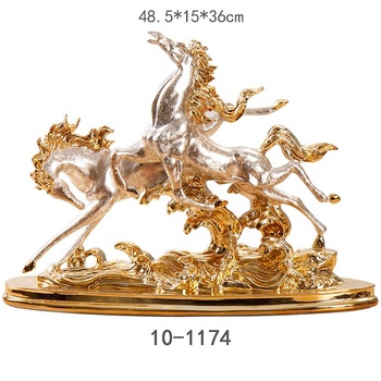 Modern yaşam boyutu reçine altın at heykel koşu at ev sanat dekorasyon heykeli